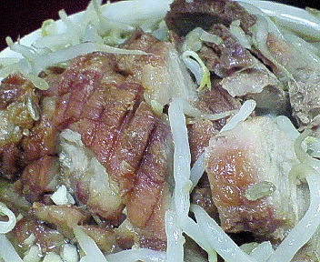 --- 蓮爾では初のブタダブル系、小ダブルを注文! 蓮爾はブタ1個がでかいから、大でも小でもダブルは無理とか思ってたけど、 なんかこの日は食えそうな気がしたのでチャレンジしてみました。 小ダブル野菜ニンニクカラメ。 ブタを強調しようと思ってモヤシをどけたら、美しくなくなってしまったので、 画像はリンクにしておく。w 小ダブル全体画像 更にブタ強調! 小ダブルブタ接写画像 ブタちょっとかたいけどウマス! ニンニク少ないけどデカス。w なんか粗みじん切りよりも粗く、ニンニク4等分くらいの感じ。w んでもって、 最後はブタにガラムマサラをかけまくって食う。 これも一つの楽しみちゃん。 初の小ダブルだったが、割と楽だったにゃぁ。 この勢いなら、大ダブルもいけたかも!!! やっぱ、全体的にちょっと量が減ったのかなぁ。 最近、食い終わった後に結構余裕がある感じ。 この日は、 助手さんが「足りなかったらどうぞ。」と麺の丼(?)を追加される客や、 「麺3分の2で」「麺増しで」「あぶら少なめで」「あつもりで」等と、 注文の多い学生風団体客や、(全部対応できるのだろうか。。。) 券売機の使い方がわからず、 ラーメンなんか食いそうもないおばちゃん団体(一人は勝手知ったるようだった)等など、 なんだか賑やかしくて面白かったです。w