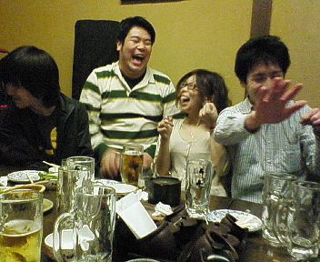 日々に追いついていない生活になっちまいましたが、 それだけ思い出が沢山あった土日だった、ってことよね。 3/31(土)のライブ日記の続き、行ってみましょうかぁ。 4番目はIMO。 こいつらだけはここ2~3年の間の飲み友達なので俺の中ではもはや身内。w でも、今回音楽ジャンル的にアウェイな俺達が唯一、心を許せる友人、というよりは、 個人的に一番対抗意識を燃やしていた相手でもあったのだった。w もうね、このIMO、俺がバンドが軌道に乗らずに悶々としていた時代に結成して、 とんとん拍子にライブを重ねて、しかも面白いステージをしやがるから、 こっちはジェラシージェラシージェラシックパークですよ! IMOが面白いと悔しい。つまり毎回悔しい。w 俺が見ないうちにキーボードが加わって、 以前よりも曲に表情がついてきた感じよね。 個人的には最後の曲が一番好きよ。 たまに鼻歌になる。 でもやっぱ、リョーコ女史はタレントだわな。 男を笑わすことができる洒落を飛ばせる女って、 俺、なかなかいないと思うんだよね。 そういうセンスは素直にすごいと思うわ。 なんかもう、今回の対バン陣を見てて、 より一層強く思ったんだが、やっぱ、 IMOとヘルパンダって客観的にジャンル一緒だよなぁ?w でもIMOの方が、毎度のメンバー紹介もあってか、 各人のキャラ立ちがしっかりしてきた気がするわよね。 なんか今日は女言葉が多いな、俺。w なんだかんだ言ったって、応援してるわのよ。 5番目は主催者てっぺいさん率いる、Who's The Funk?。 往年の名曲を畳み掛けてくれました! といっても俺はセックスマシーンしか知らなかったっすけど。(^^; ゲストがいたりとか、いつもとはメンバー編成が違ったようだけど、 興奮しすぎず落ち着きすぎずの適度な温度というか雰囲気は、 いつものとおりなんだろうなぁ。 そこらへんがファンクのクールなところよね。 最近、ラテンジャズっちいものが好きなので、 カッティングギターやサックスは大好物なのだけども、 特に俺は、ボーカルさんの心から楽しそうな笑顔にやられました! トリはBASIL。 この日のバンドの中でもとりわけグルーヴ力が高いというか、、、 迫力が抜きん出てたなぁ。 個人的に、俺、明るくて楽しげな曲って、あんまり好きじゃないんだけど、w この人たちの曲は、この日一度しか聴かなかったにもかかわらず、 結構、今、気付いたら鼻歌になっちゃってるのよ。 なんか、覚えちゃった。それだけキャッチーなんだな。 是非また見てみたい! でも、さすがに一日に6バンドというのは、ちょっと疲れちった。。。 歳だなぁ。。。w でもホント楽しかったよ! てっぺいさん、企画に呼んでくれて本当にありがとうございました。 翌日にはオオタニT練が昼にあったため、 打ち上げは終電までにしようと思っていたのだが、 駅に行ったらもう終電無くなってた。。。 ちゃんと終電時間確認しなかったからなぁ。迂闊でした。。。 なので、もう大いに打ち上げも楽しんできました。 241ちゃん、差し入れのお刺身ありがとう!!! 美味過ぎた!!!さすが活〆241ちゃん!!! そしてテンション上がり過ぎて、またもや大槻様御降臨の俺。w オーツキだーっ!!! 写真は二次会にてココロココ集結の図。 一応飲み屋で掲載許可もらったんだが覚えてねぇだろうな。w 問題あったら言って下さい。w ってか、そのまま再結成してください。w 以下は噂の「メガネザケ」。 俺は学生時代、とあるメガネメーカーでバイトをしてたけど、 超音波洗浄機にとっても似てる。 美味しそうですね。 相変わらず汚ねぇ飲み会だなぁ。w いつまでもこうやっていたいと心から思う。 そうそう、この日得た個人的キーワードは、 「五木寛行(字あってる?)」と「ラスタ」。 調べてみますねー。>ココロココ大ちゃん、くもり空ちひろさん 長々と続いた31日の日記もこれにて終了。お疲れ様でしたー!